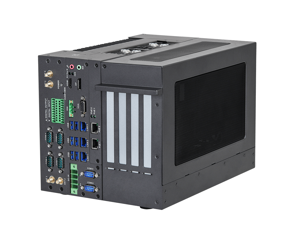 Встраиваемый компьютер для искусственного интеллекта. Высокая скорость Edge вычислений достигается благодаря гибкой конструкции ПК с поддержкой графических карт размером 275 мм x 138 мм x 60 мм (Д x В x Г) и мощностью до 600 Вт.