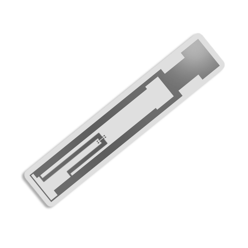 RFID-метка предназначена для маркировки металлических объектов и емкостей с жидкостями. Особенностью конструкции этой метки является небольшой участок антенны, находящийся вне вспененной подложки метки. Перед нанесением метки на поверхность маркируемого предмета этот участок антенны необходимо подогнуть на клейкую сторону метки.